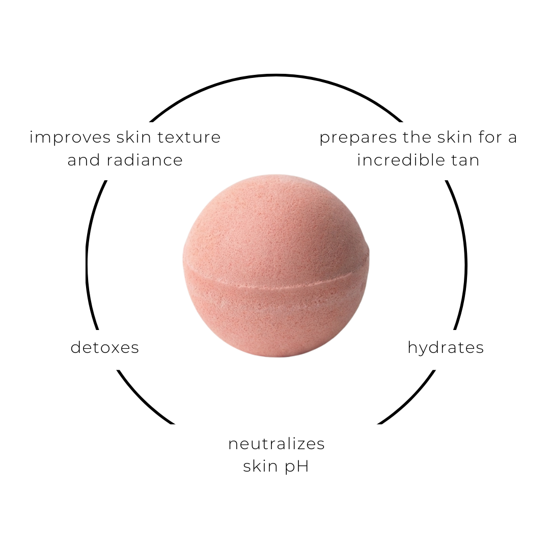 Our selection of bath bombs will provide your clients with a full spectrum of bathtub experiences, from a relaxing deep cleanse to an invigorating recharge, and everything in between while preparing the skin for their Spray Tan. How? Sodium bicarbonate mixes with water it helps to adjust the pH levels, making the skin more alkaline, allowing the spray tan to bond better to the skin.